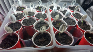 Easiest way I’ve found – start seeds in ziplocks, then into the SOLO cups for a few weeks – then harden and plant outside! No extra steps, no upotting, etc.
